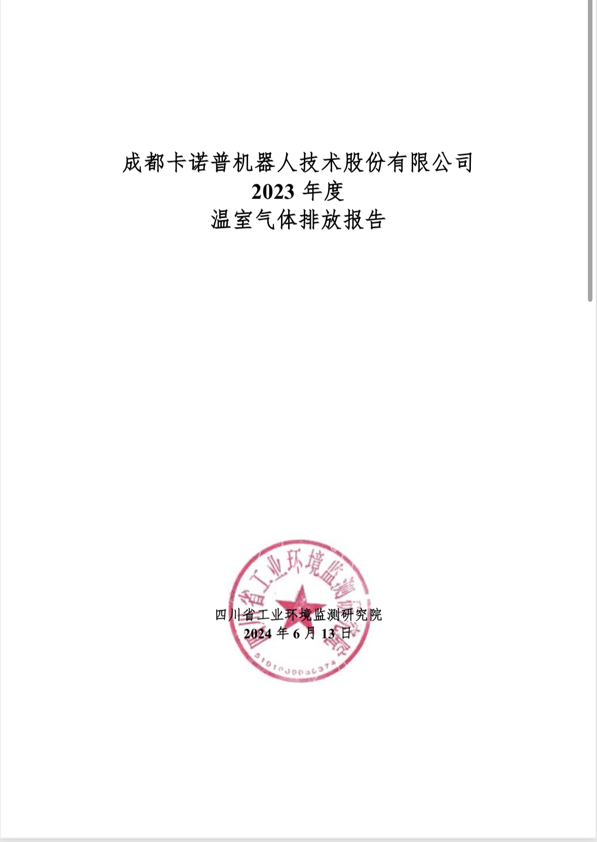成都今年会电竞机器人技术股份有限公司 2023 年度 温室气体排放报告