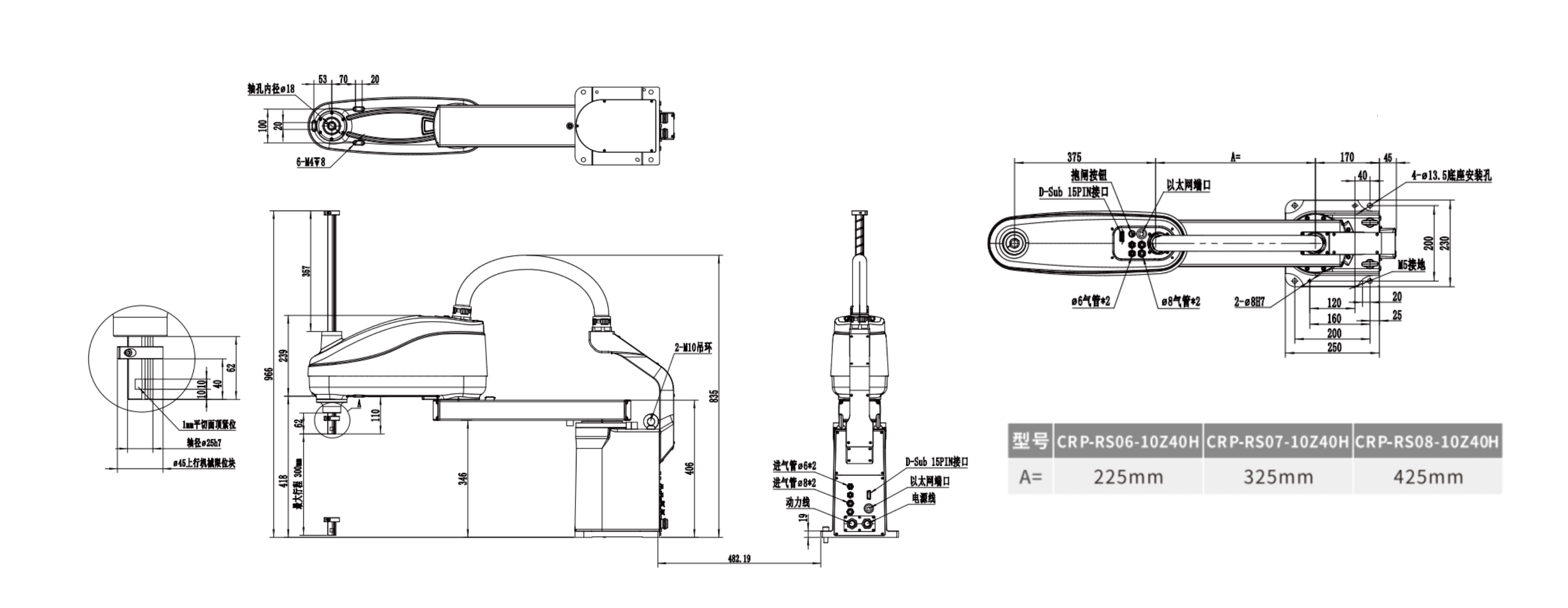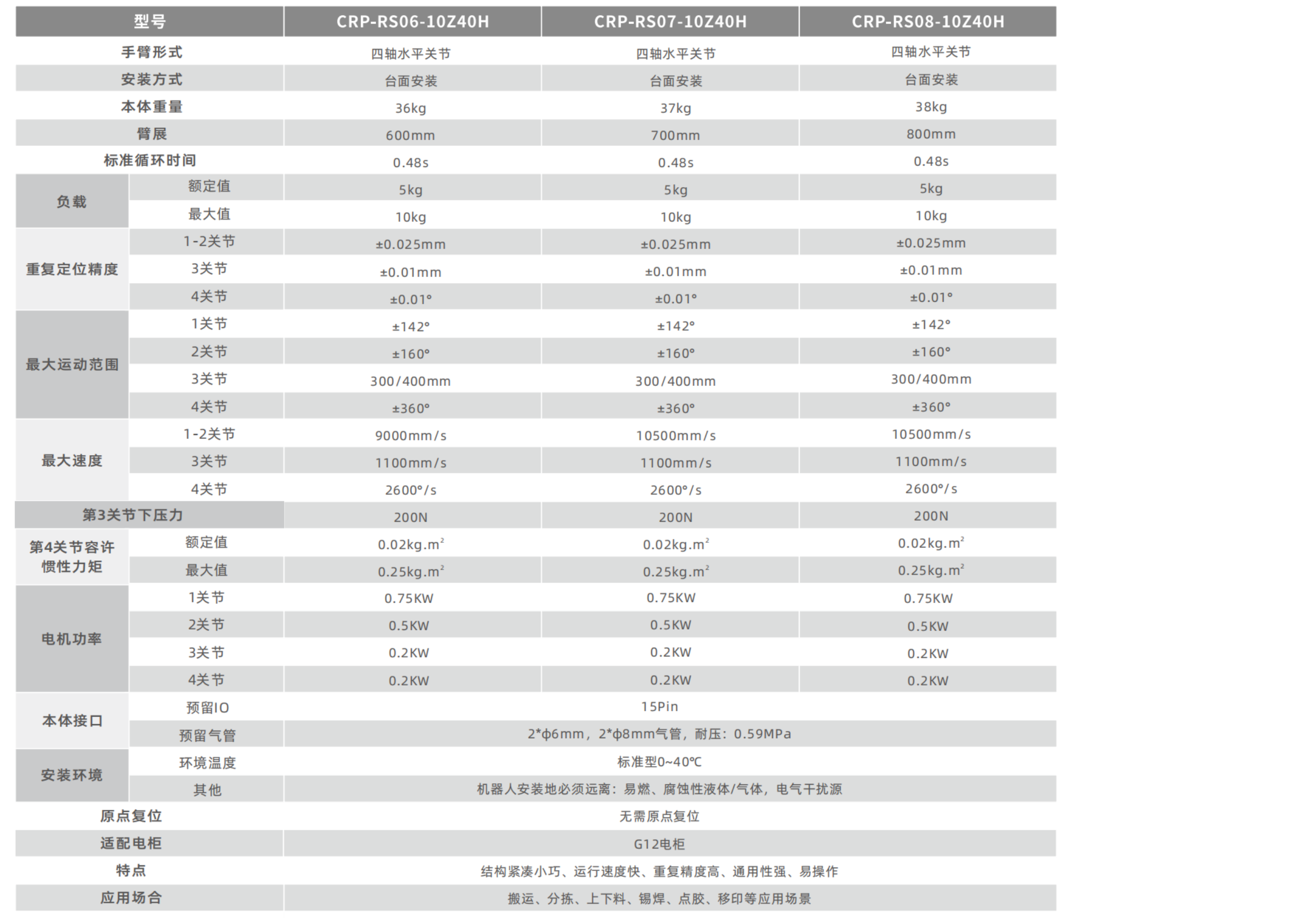 • 可提供600毫米臂长规格,最高有效负载可达10kg,额定有效负载为5kg。